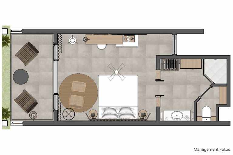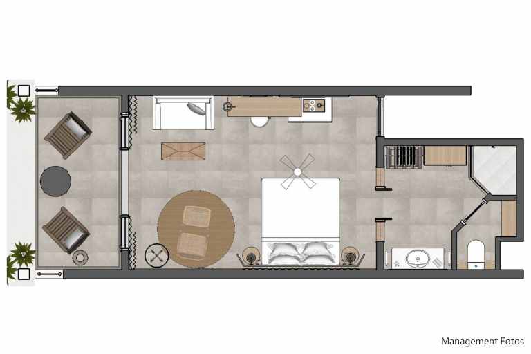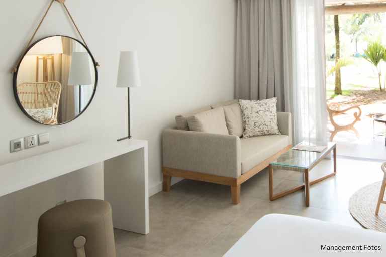Das Superior-Zimmer (ca. 31-35qm) mit Meerblick bietet neben derselben Ausstattung wie beim Comfort-Zimmer auch einen kombinierten Wohn- und Schlafraum.