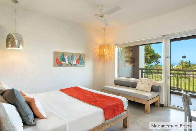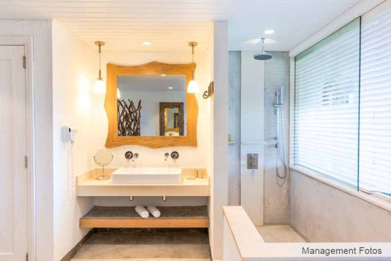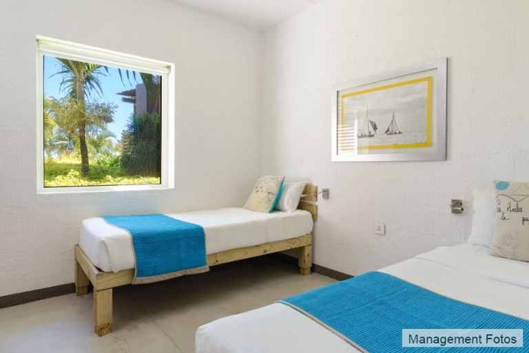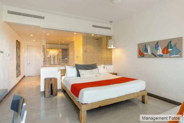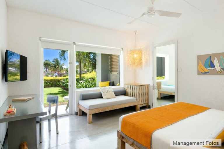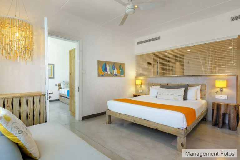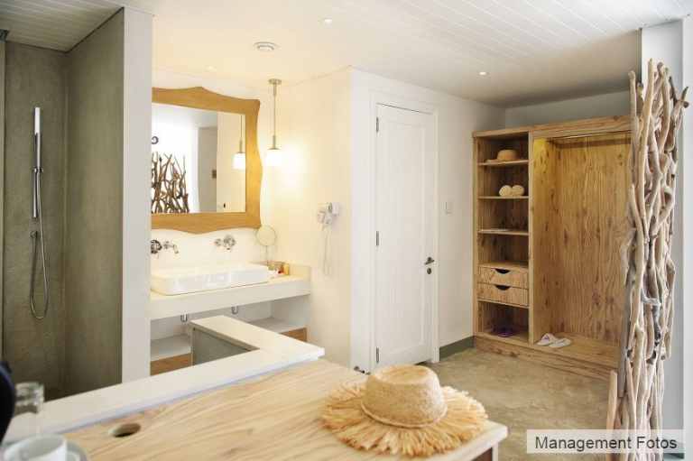 Die zwei Superior Zimmer, die durch eine Verbindungstür getrennt sind, sind die Family Apartments. Am Strand in den Gebäuden befinden sich die Couple Junior Suiten Beachfront (50 qm).