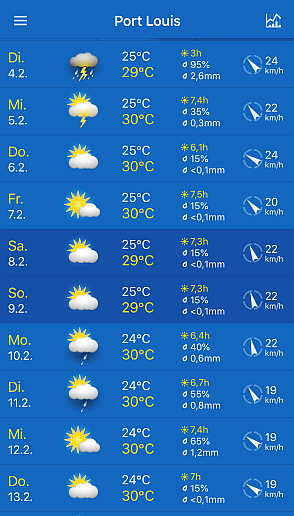 Die Zeitverschiebung zwischen Deutschland und Mauritius beträgt nur zwei bzw. 3 Stunden. Das Meer ist in der Regel flach abfallend ganzjährig warm und bedingt durch die vorgelagerten Riffe gibt es selten hohe Wellen.