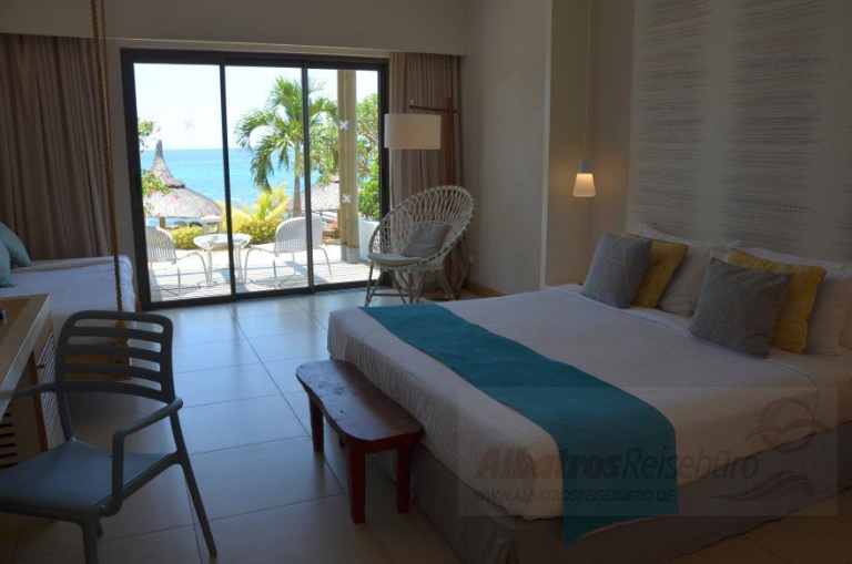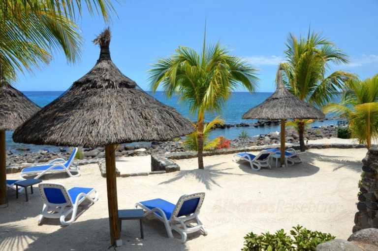 Das Hotel befindet sich mit einer direkten Lage an einem kleinen Strand an der Westküste von Mauritius. Zu dem Ort Flic en Flac sind es ca. 0,2 bis 1 km Entfernung.