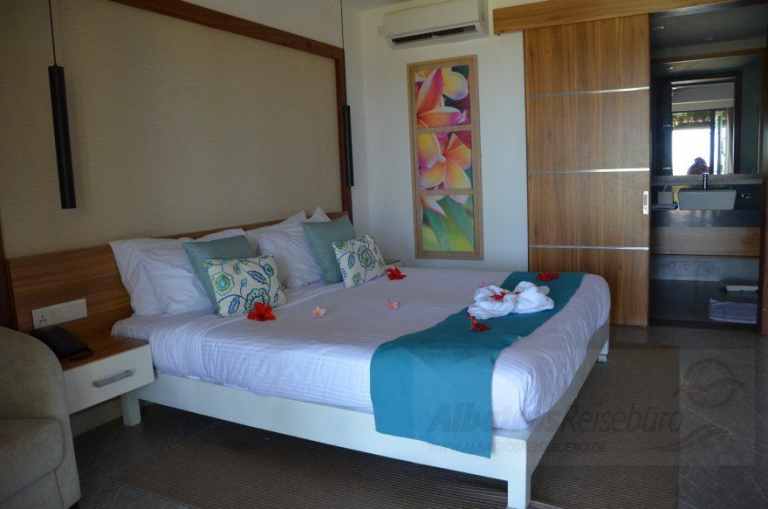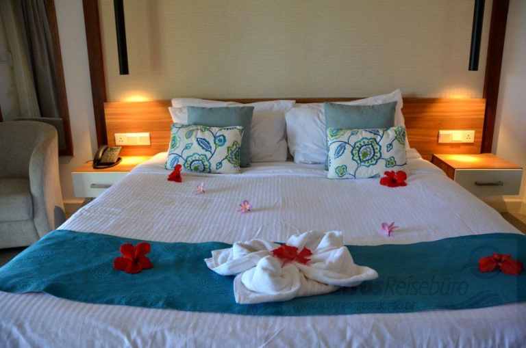 Verschiedene Bedroom-Bungalows gibt es mit 1,2 oder 3 Schlafzimmern. Sie sind zwischen ca. 60 qm bis 120 qm groß und bieten u. a. Bäder mit Dusche, WCs, Telefon, TV, kostenfreies WLAN, Klimaanlage, einen Gartenblick und sind auf der Meerseite. Der 3-Bedroom Bungalow besitzt 2 Bäder.
