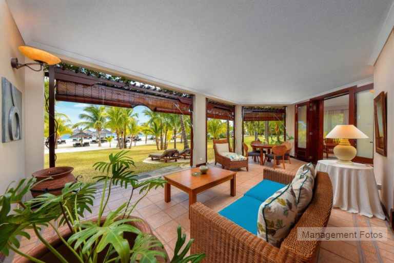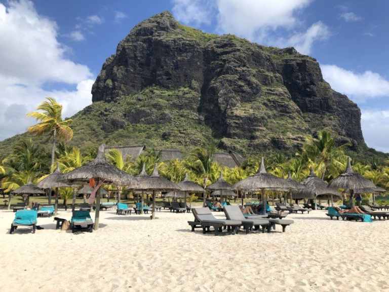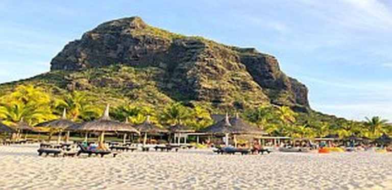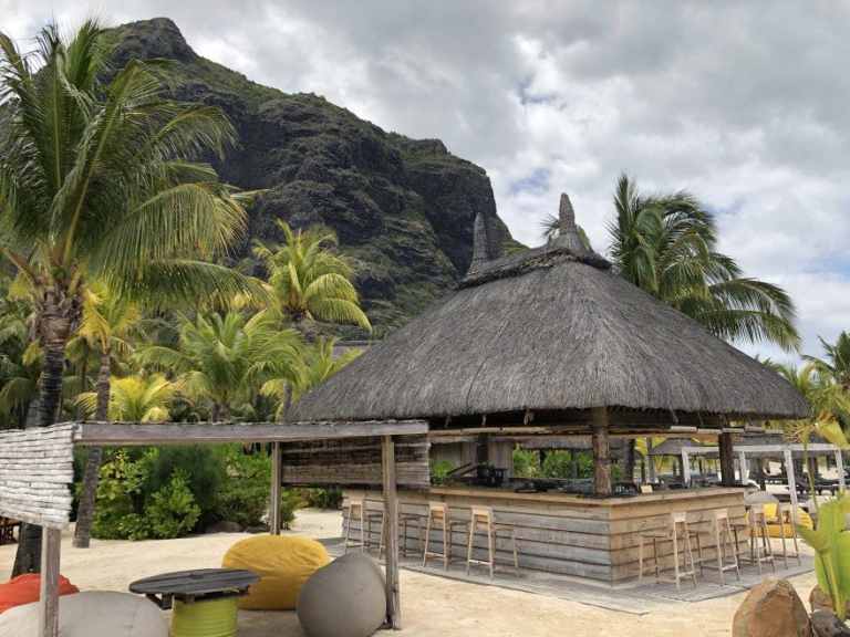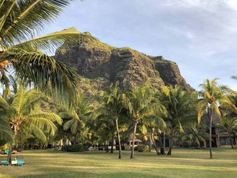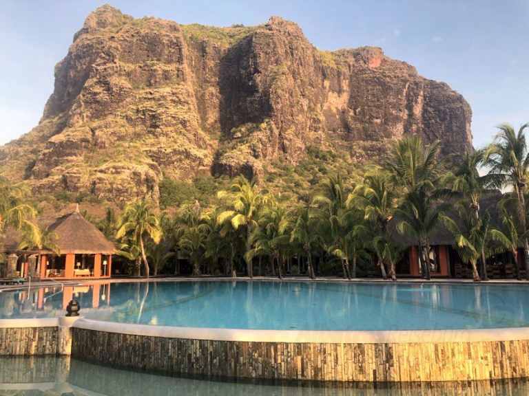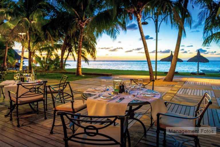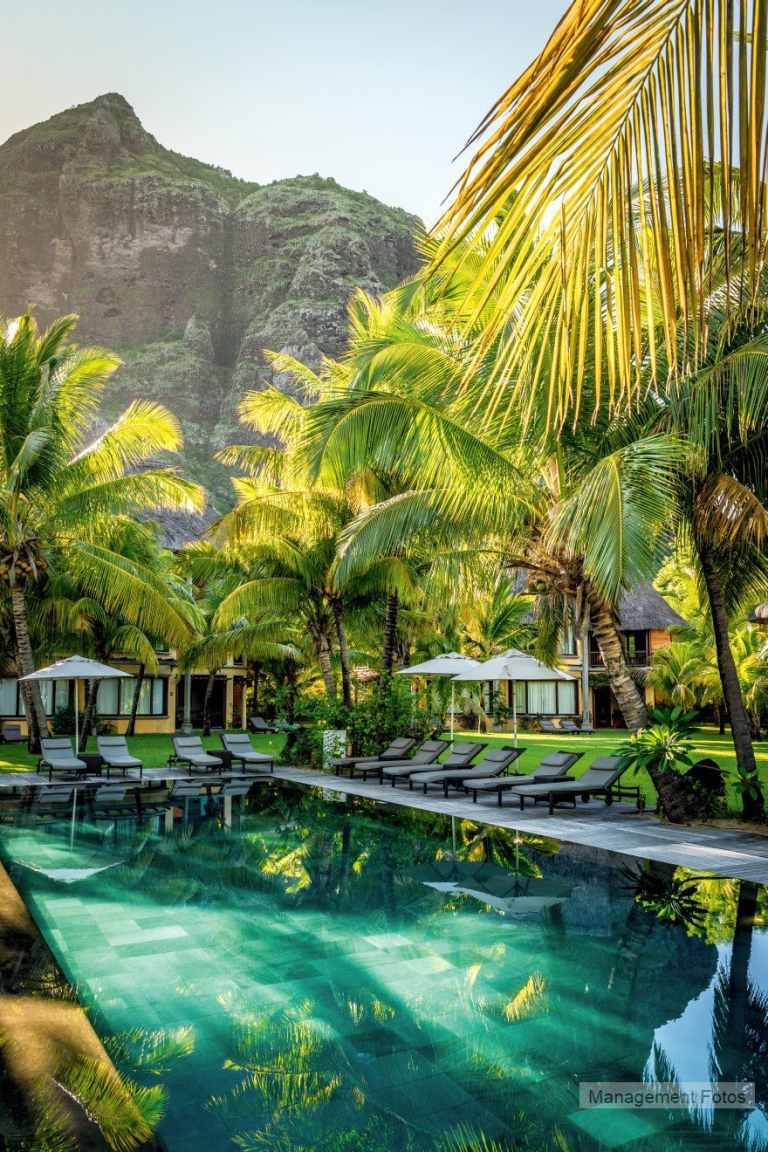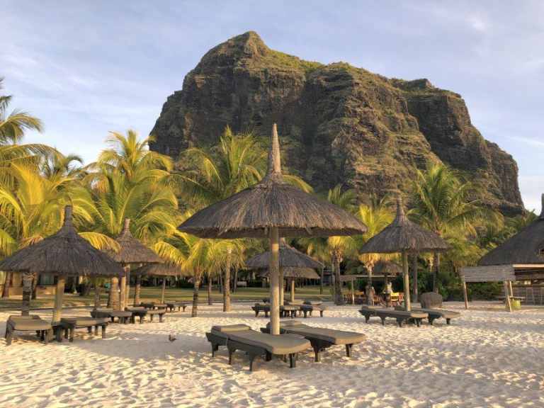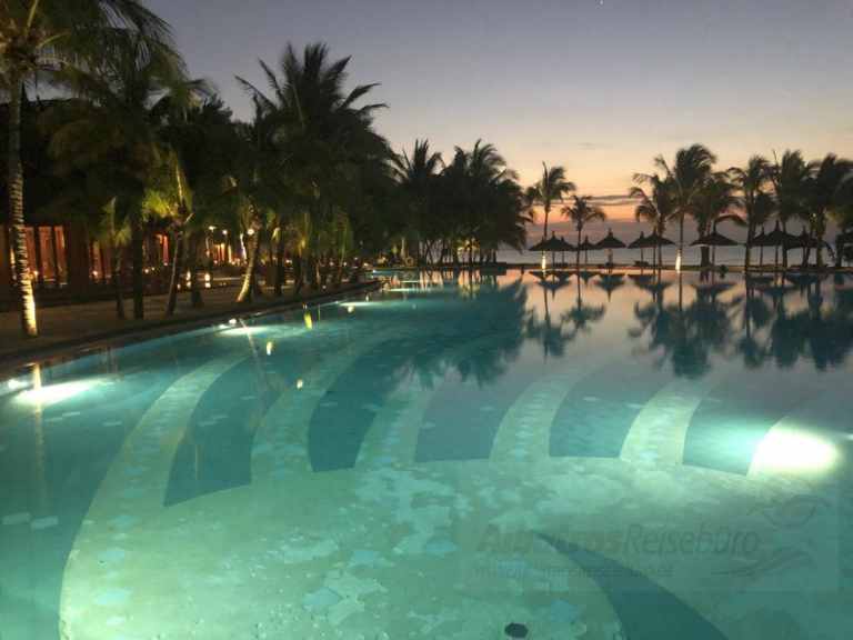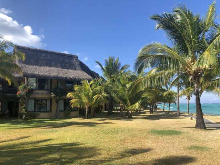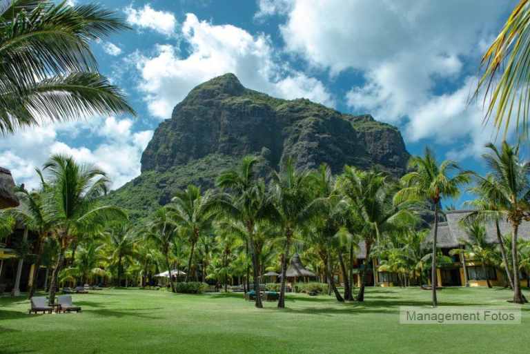 Das Resort befindet sich in direkter Strandlage. Es erstreckt sich auf eine Landzunge am Fuße des Berges "Le Morne Brabant".