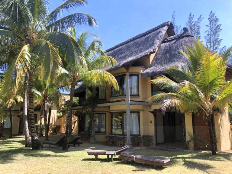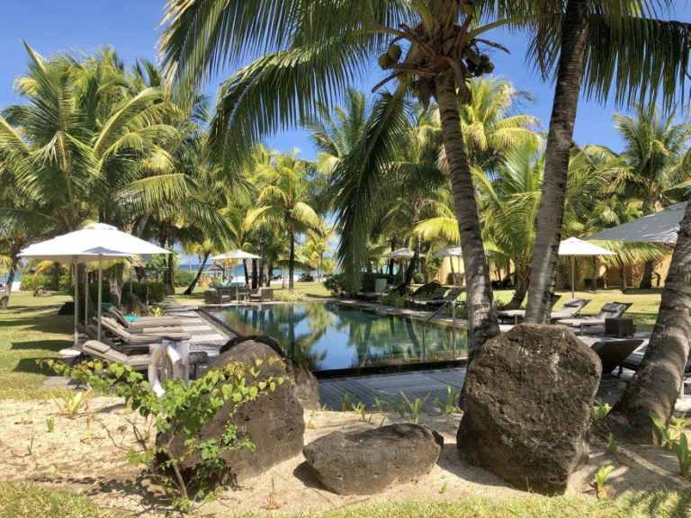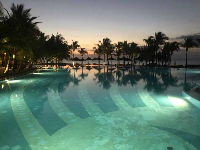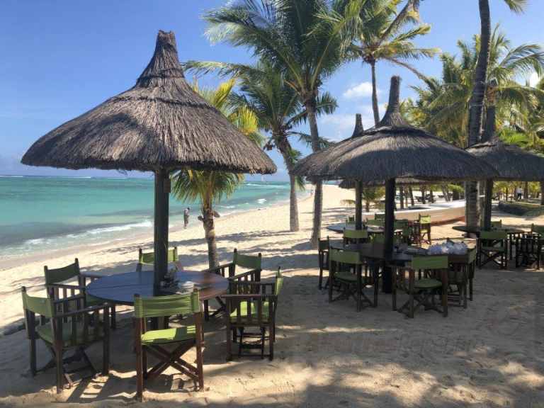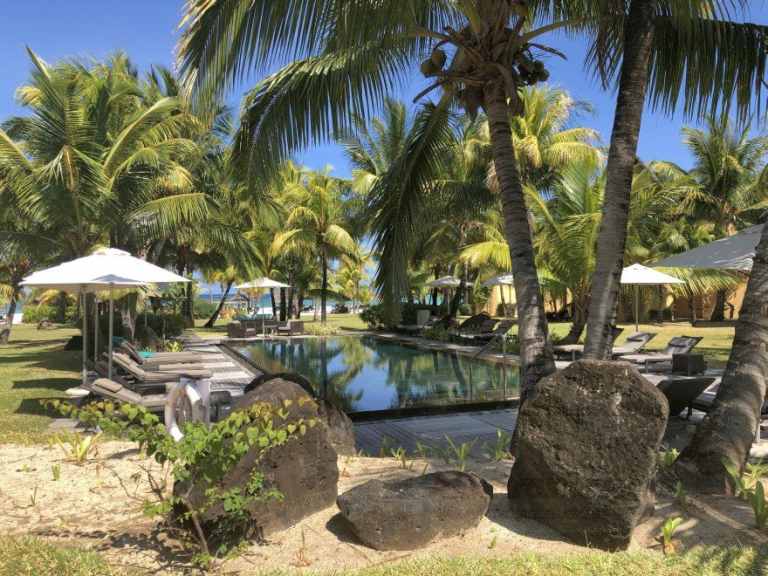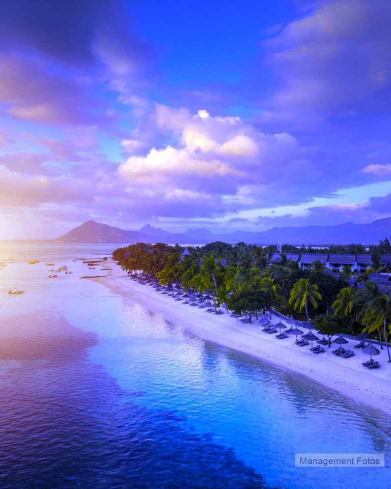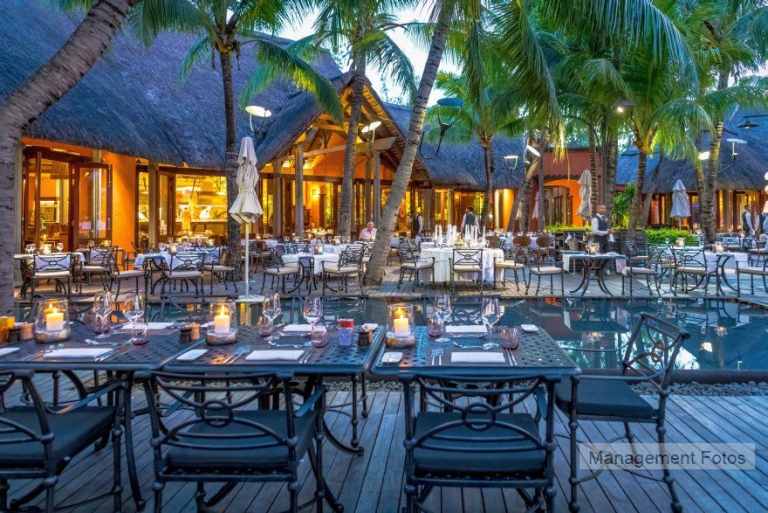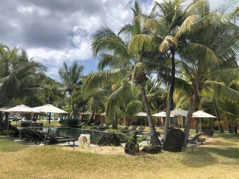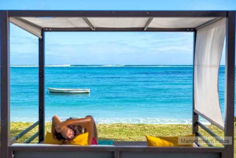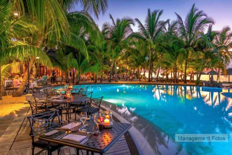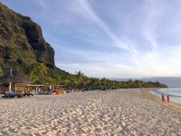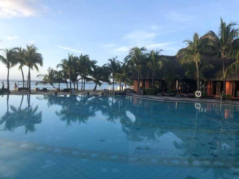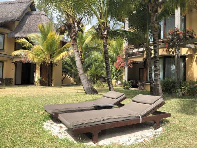 Das Resort befindet sich in direkter Strandlage. Es erstreckt sich auf eine Landzunge am Fuße des Berges "Le Morne Brabant".