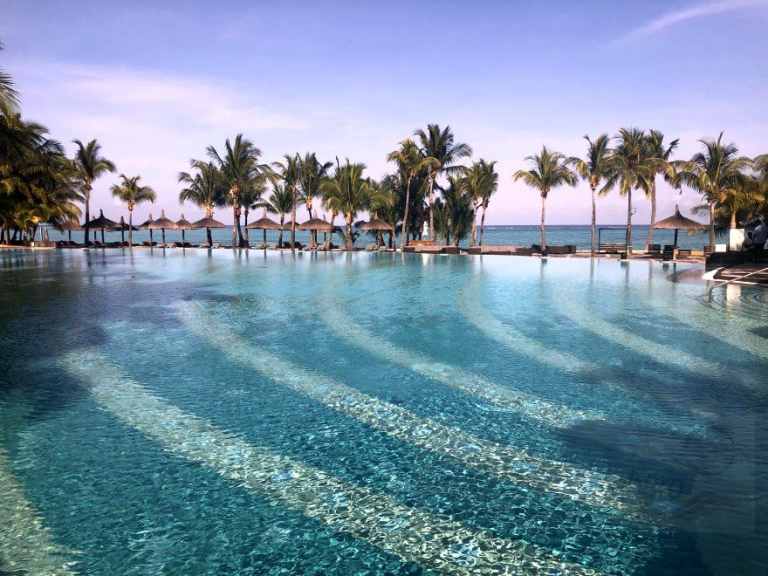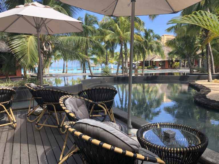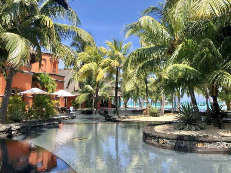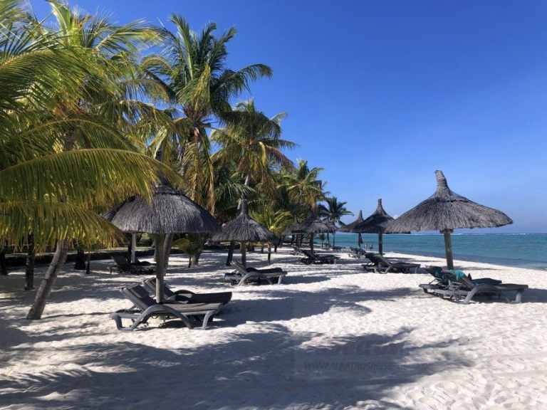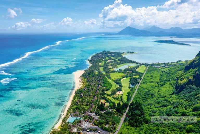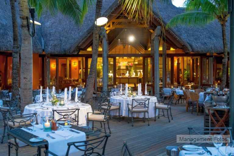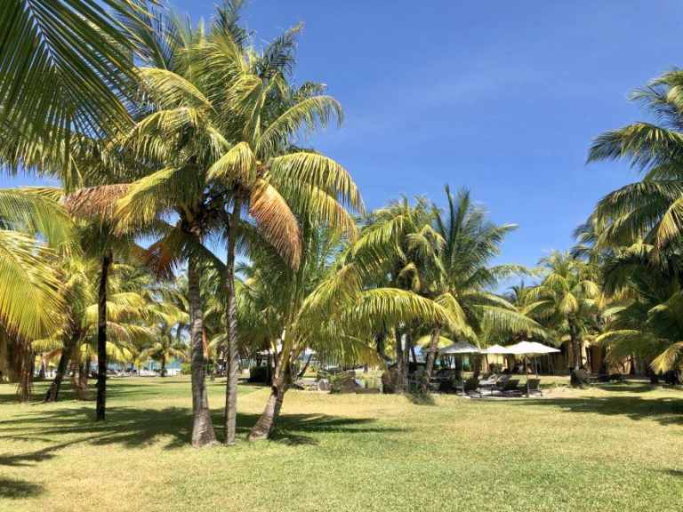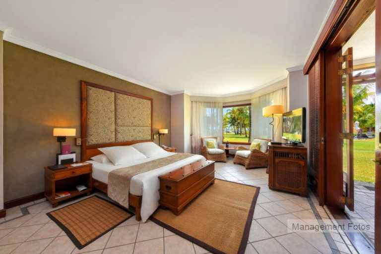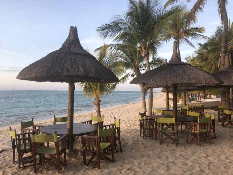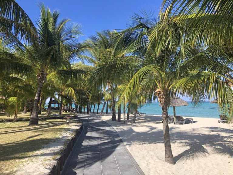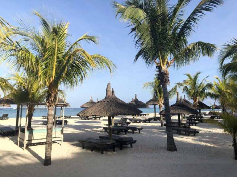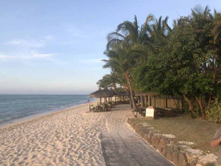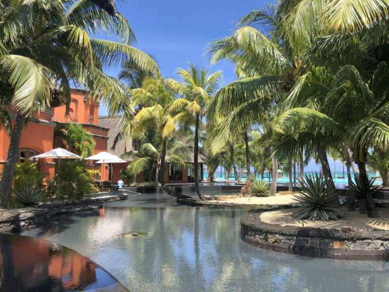 Das Resort befindet sich in direkter Strandlage. Es erstreckt sich auf eine Landzunge am Fuße des Berges "Le Morne Brabant".