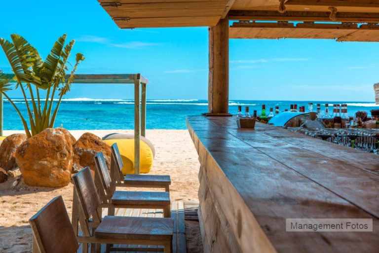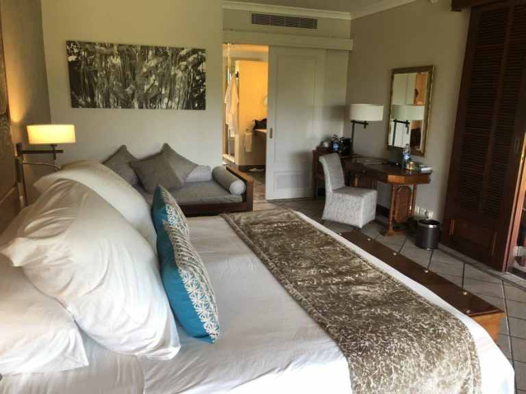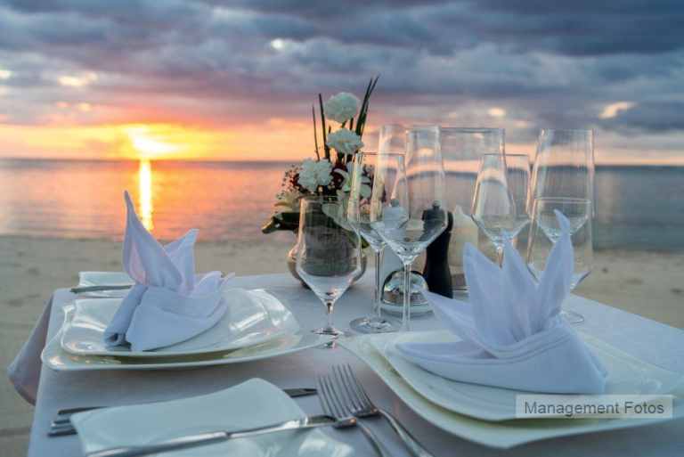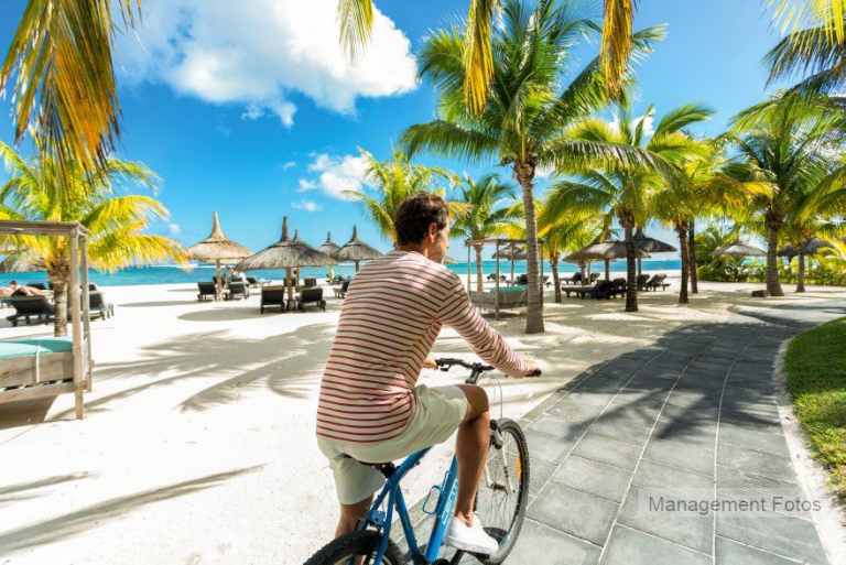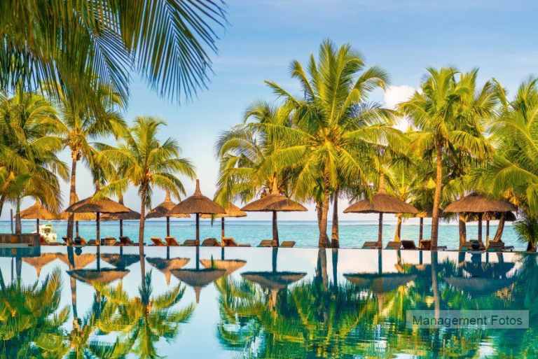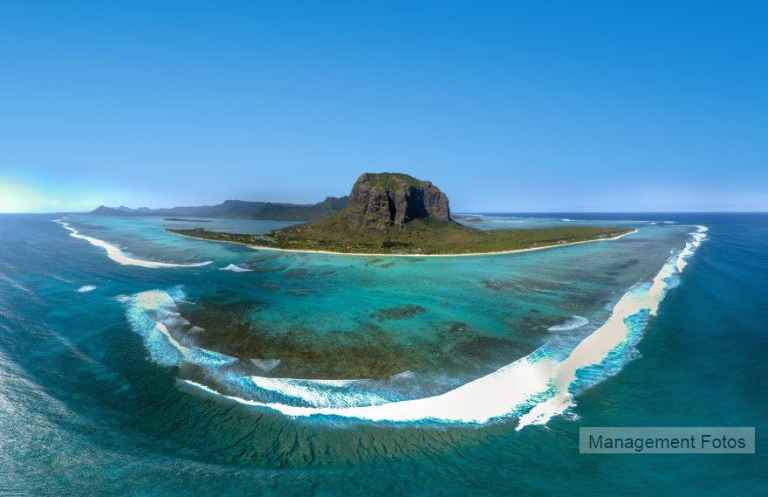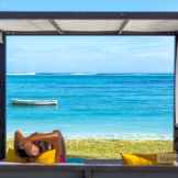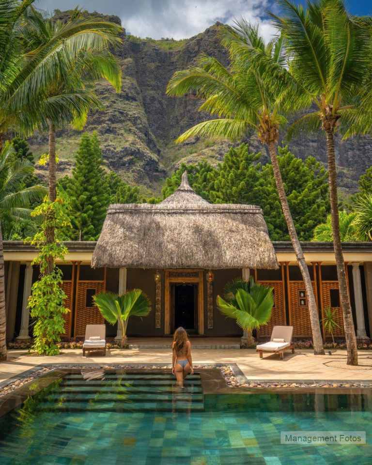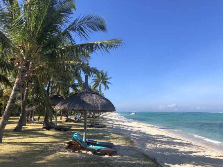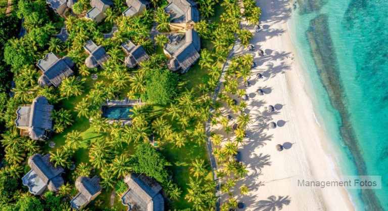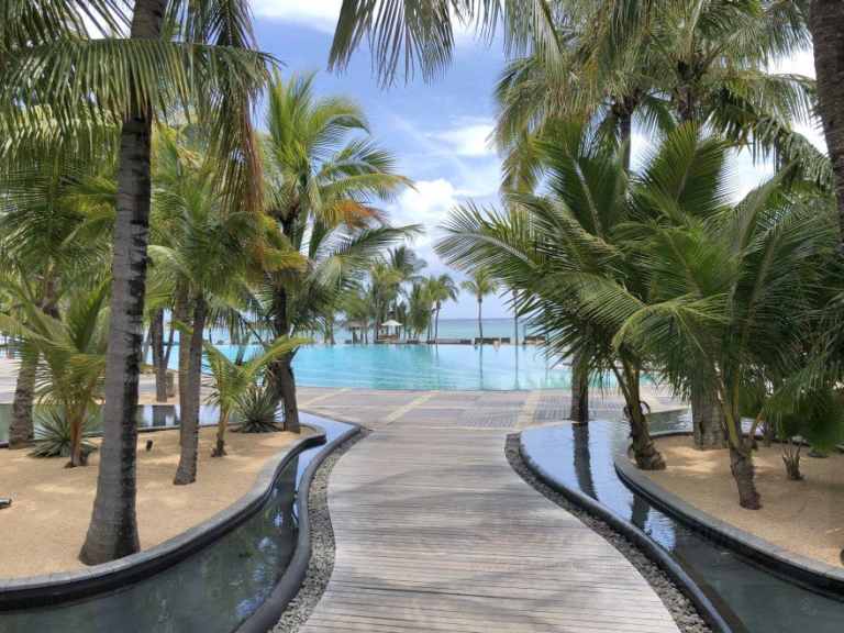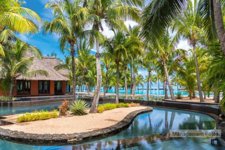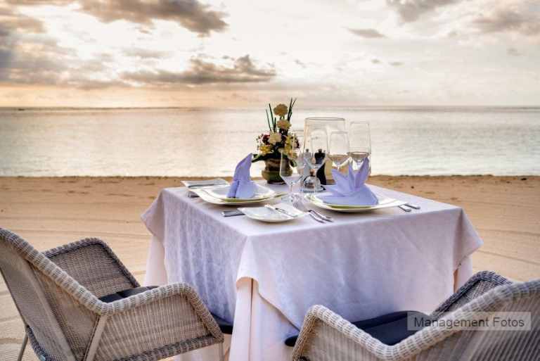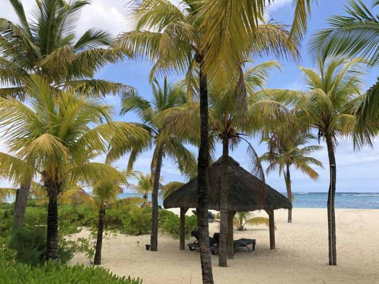 Das Resort befindet sich in direkter Strandlage. Es erstreckt sich auf eine Landzunge am Fuße des Berges "Le Morne Brabant".