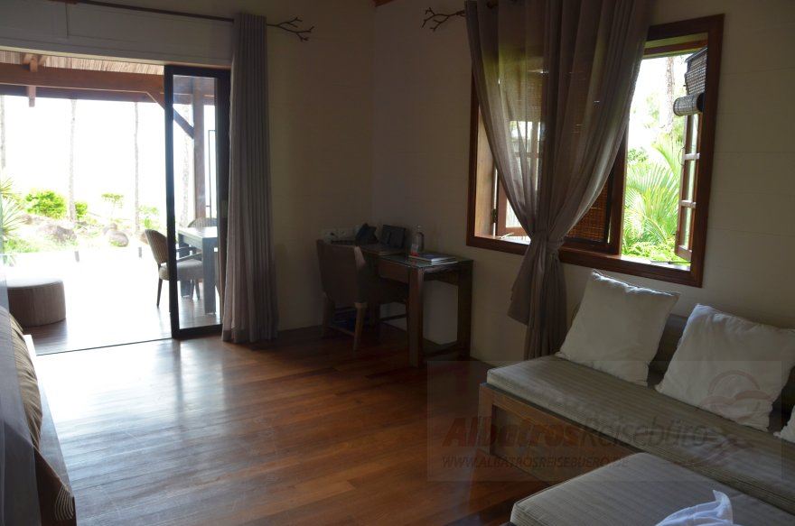 Die Standard Zimmer sind ca. 50 qm groß und mit einem offenen Bad und Außendusche, Deckenventilator, Föhn, Minibar, Safe, Kaffee-/Teezubereiter, Telefon und einer iPod Docking-Station ausgestattet. Die Veranda bietet einen schönen Blick auf den gemeinsamen Pool.