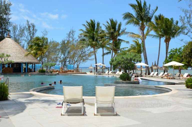 Dieses Hotel ist optimal für Erholung und Entspannung geeignet. Auf der weitläufigen Gartenanlage befinden sich 4 Swimmingpools (einer nur für ausgewählte Gäste benutzbar). Sie können sich in der Chill-Out "Bar Bleu" oder in einen der 3 Restaurants kulinarisch verwöhnen lassen. Internationale Gerichte gibt es im "Mercado", modern interpretierte lokale und europäische Speisen gibt es im Strandrestaurant "Edgewater" . Einen Mix aus Meeresfrüchten gibt es im "Willie & Crab Shack". Im Gourmet-Restaurant "Plantation Club" können Sie mauritische Spezialitäten genießen. Zur weiteren Ausstattung des Hotels gehören noch der "Roubens Wine Room", eine Abreiselounge, ein Mini-Club, eine Boutique und WiFi ohne Aufpreis auf den Zimmern, an der Bar oder in der Lobby.