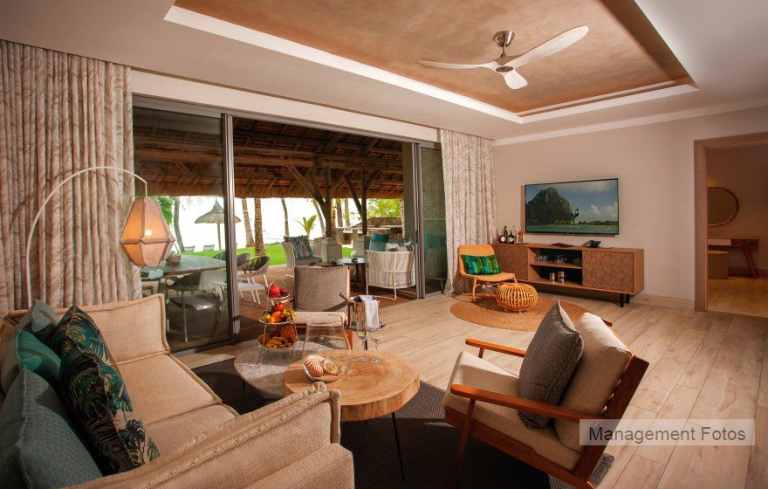 Die gleiche Ausstattung wie die Tropical Zimmer haben auch die Tropical Beachfront Zimmer. Sie befinden sich direkt in der ersten Reihe zum Strand.