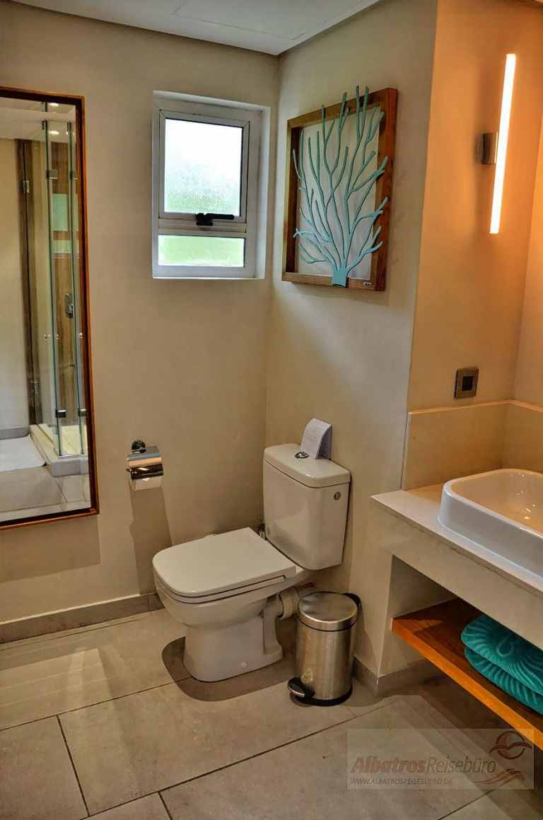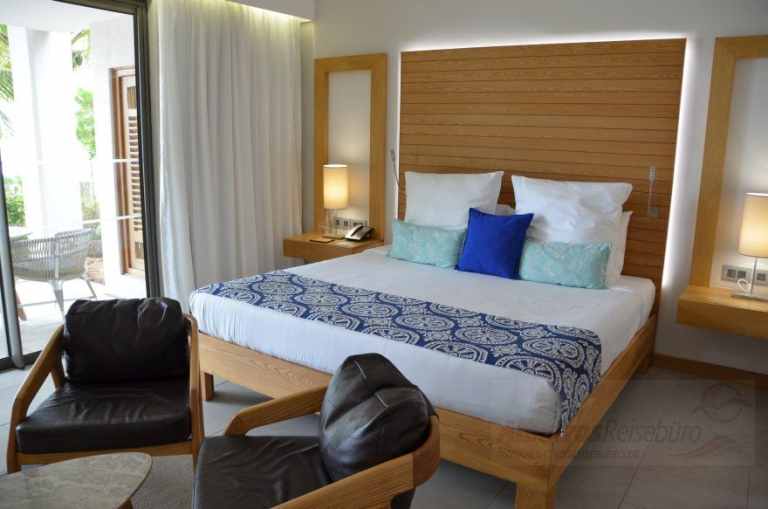 Das Resort verfügt über 299 Zimmer. Die ca. 50 qm großen Ocean Zimmer besitzen ein Bad/Dusche/separates WC, Klimaanlage, Safe, Telefon, Föhn, Sat.-TV, Tee-/Kaffeezubereiter und eine Minibar. Der Balkon oder die Terrasse liegen zur Meer-/Lagunenseite. Die renovierten Tropical Zimmer und Promo Tropical Zimmer liegen zur Meerseite.