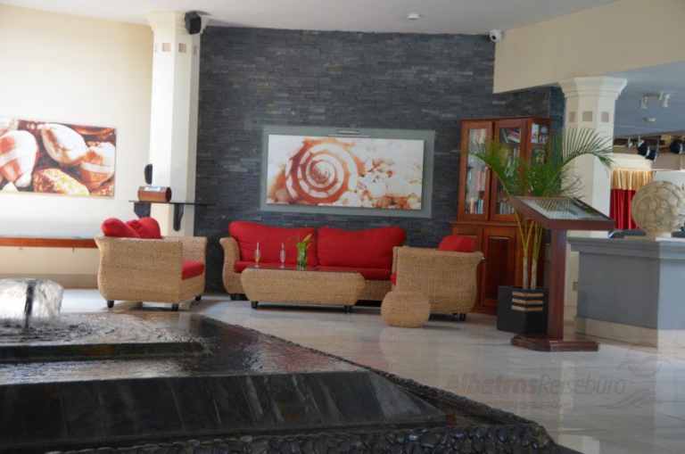 Ein sympathisches Ferienhotel mit 76 Zimmern. Ein Haupthaus das parallel zum Strand verläuft und ein Nebengebäude auf der gegenüberliegenden Straßenseite.