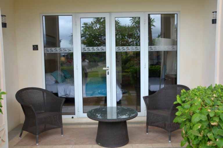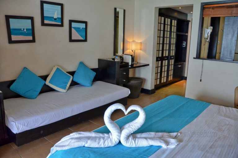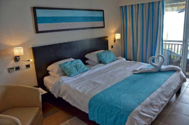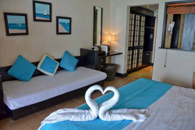 Die Deluxe Superior Zimmer (35 qm) sind Unterschiedlich in der hinsichtlich der Aussicht auf das Meer. Diese Aussicht ist durch die Vegetation teilweise eingeschränkt.
