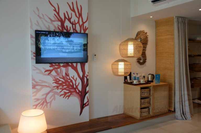 Die Superior Zimmer sind mit Bad, Dusche, WC, Klimaanlage, kostenfreiem WLAN, Minibar, TV, Föhn, Safe, Tee-/Kaffeezubereiter und einem Balkon oder Terrasse mit Meerblick ausgestattet. In besserer Lage befinden sich die Garden Family Zimmer.