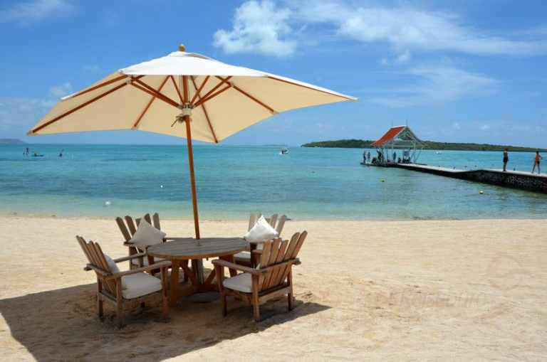 Eine wunderschöne Lage an der Ostküste von Mauritius, an einen weiten Sandstrand auf einer privaten Insel. Zum Ort Mahébourg sind es ca. 2 km und zum Flughafen ca. 10 km.