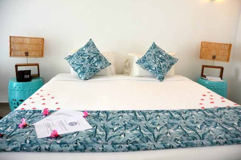 Die 47 qm großen Deluxe Zimmer bieten mehr Platz, eine Terrasse und einen Garten- oder Poolblick.