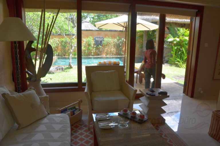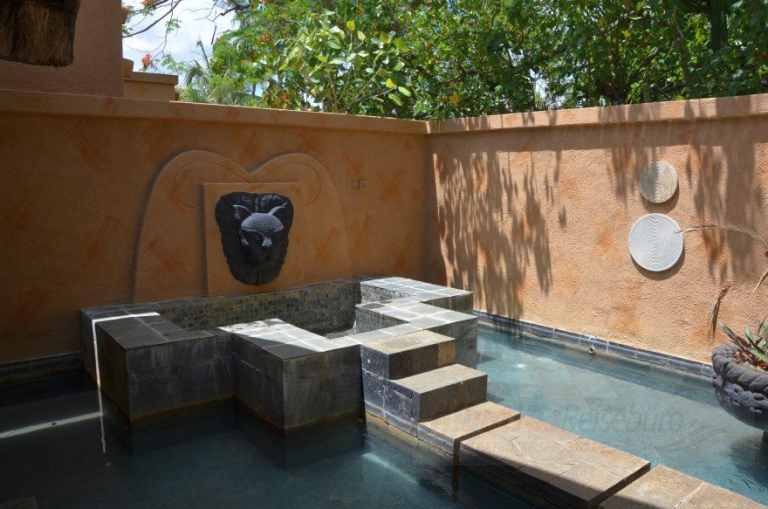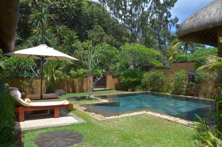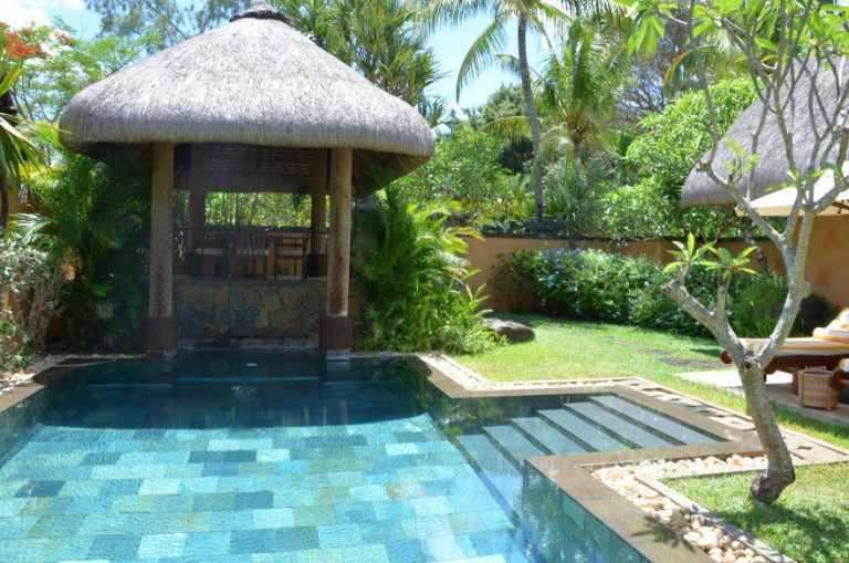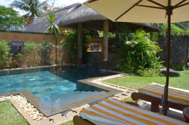 Die Luxury Villa mit privatem Pool (275 qm ) verfügt zusätzlich einen eigenen, beheizbaren Pool (4,5 x 8 m) . Er lädt im mauritischen Winter zum entspannen ein. Diese Luxury Villa mit privatem Pool ist auch auch Two Bedroom Luxury Villa mit privatem Pool buchbar. Der eigene Garten, in dem die beiden Villen-Typen integriert sind, ist von einer Mauer umgeben. Zusätzlich lädt ein offener, strohbedeckter Pavillon zum Dinieren oder Verweilen ein.