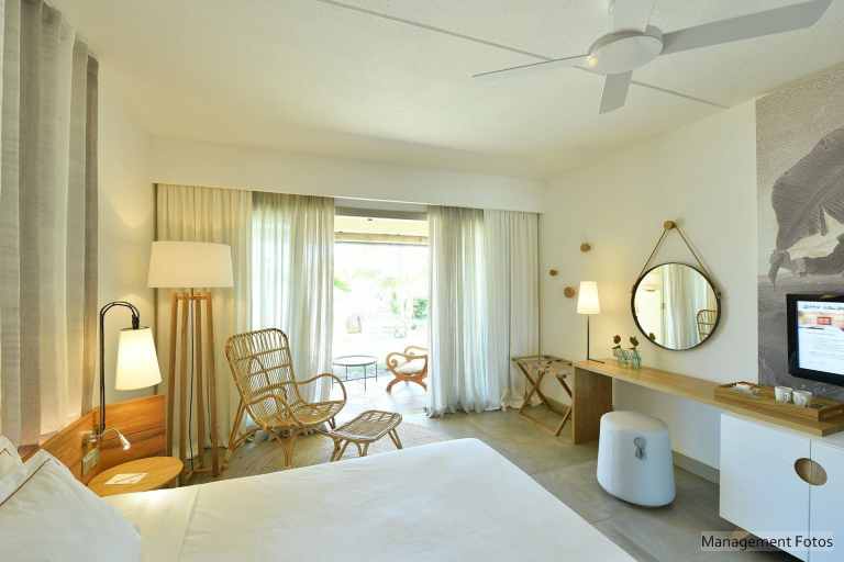 Das Privilege-Zimmer (ca. 41-45qm) mit seinem Meerblick hat neben seinen ca. 10qm größeren Zimmer dieselbe Ausstattung wie das Superior-Zimmer.