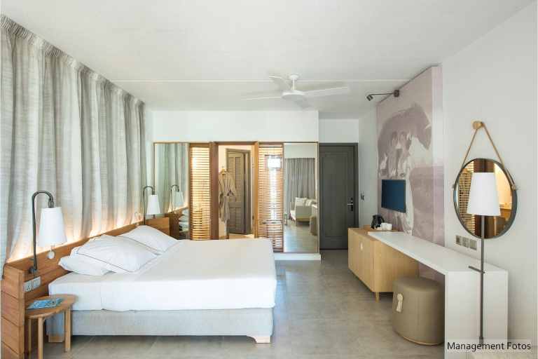 Das Superior-Zimmer (ca. 31-35qm) mit Meerblick bietet neben derselben Ausstattung wie beim Comfort-Zimmer auch einen kombinierten Wohn- und Schlafraum.